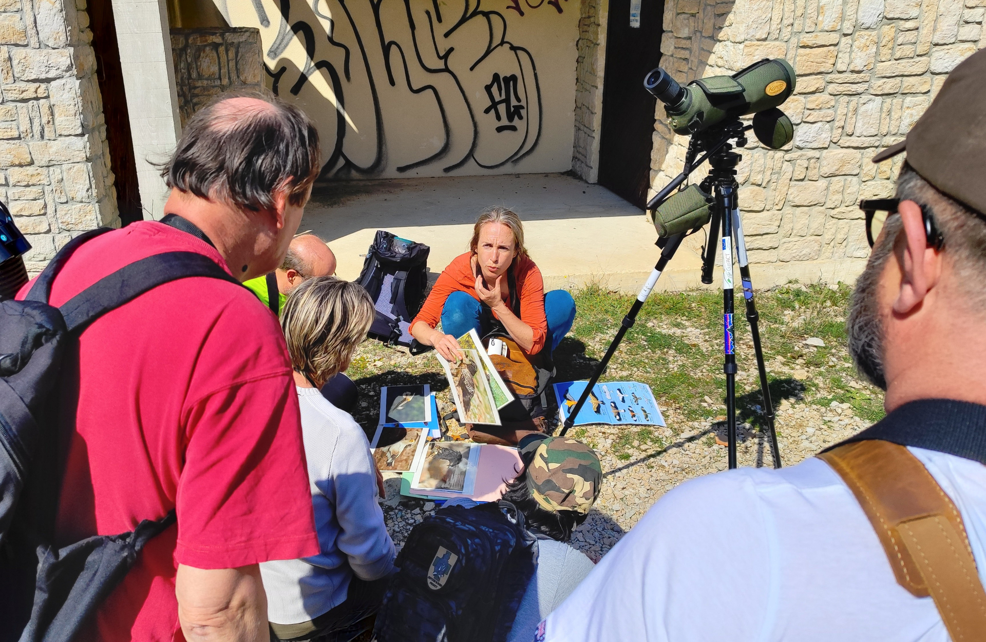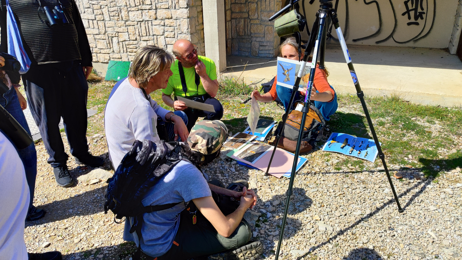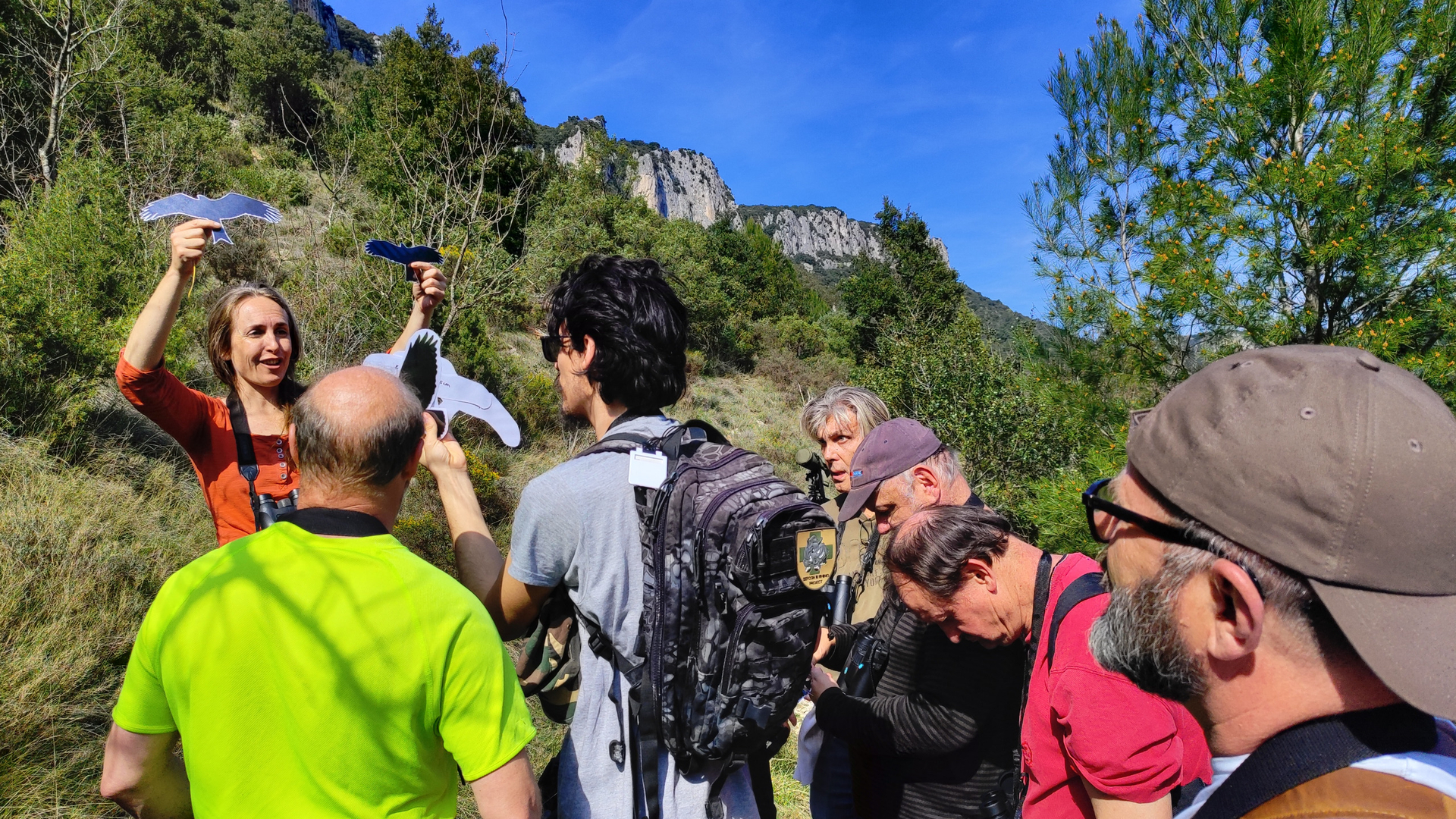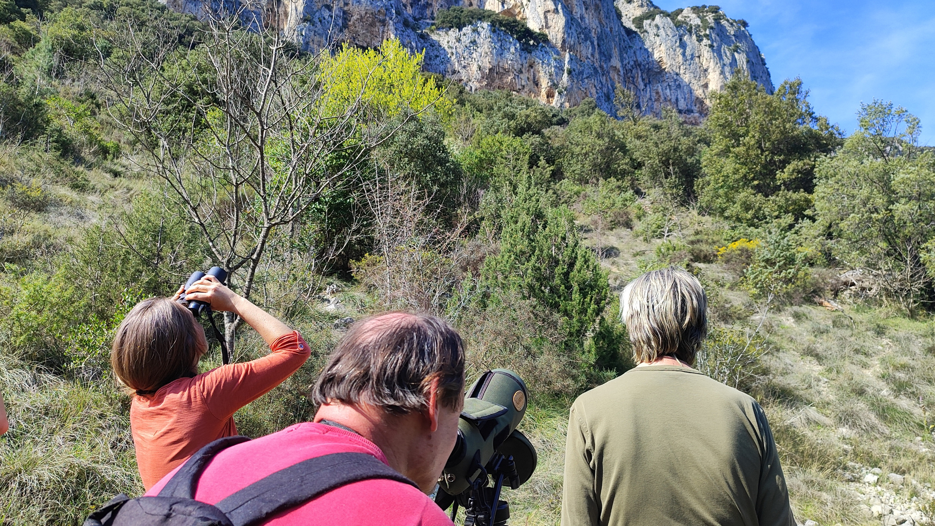 Observation grandeur nature : Munis de jumelles, les travailleurs ont admiré le vol majestueux des vautours fauves.