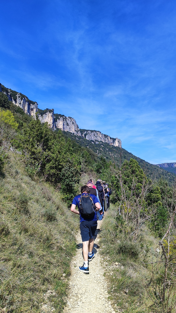 La matinée a débuté par une randonnée dynamique au départ des berges de l'Ardèche, traversant le village de caractère de Vogüé jusqu'à l'ancienne carrière. Entre patrimoine et nature, l'équipe a pu admirer la vue panoramique sur le château et comprendre l'histoire des métiers d'autrefois.